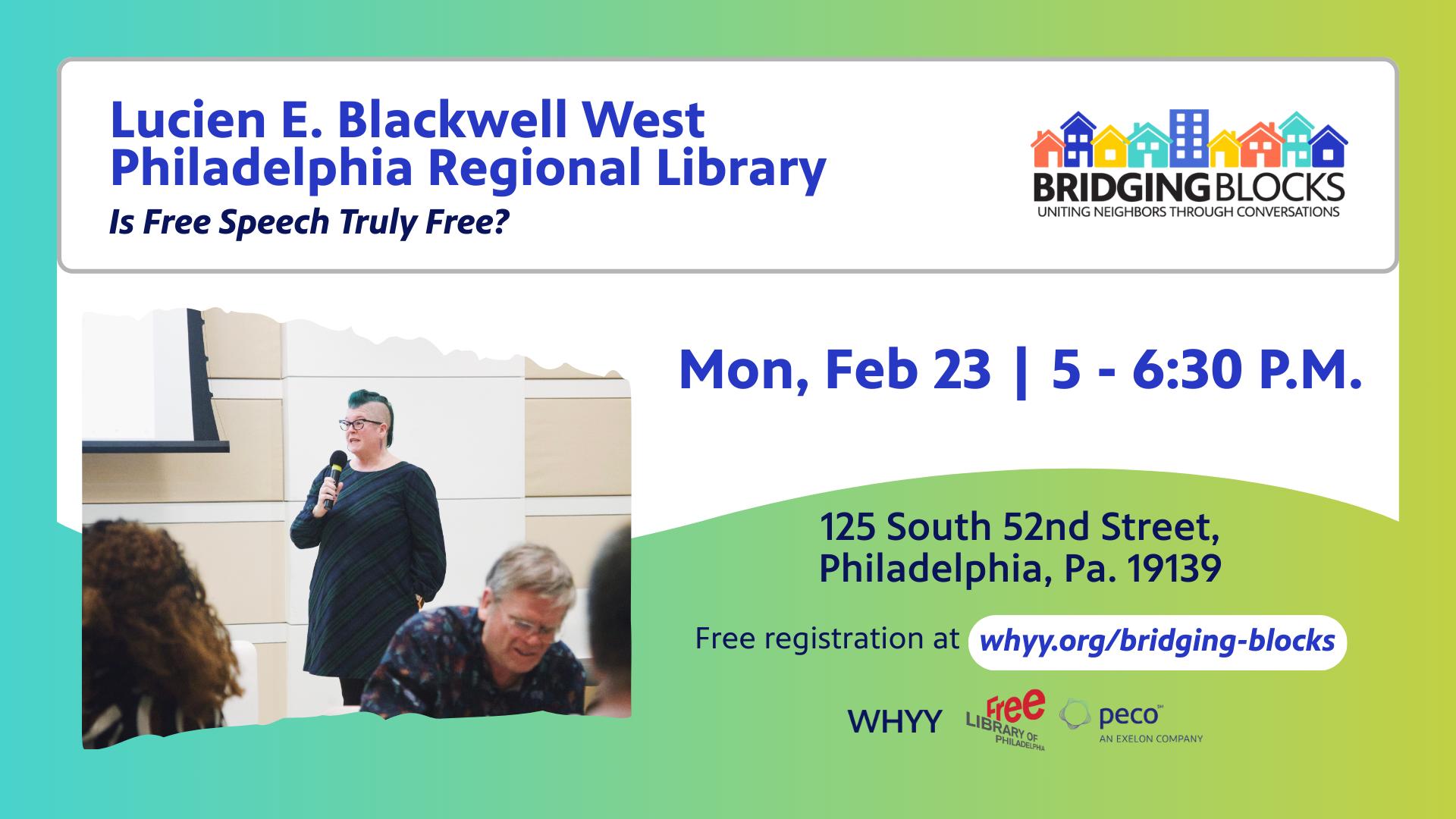 Join WHYY News Community & Engagement team for Bridging Blocks, a civic dialogue series in partnership with The Free Library of Philadelphia.