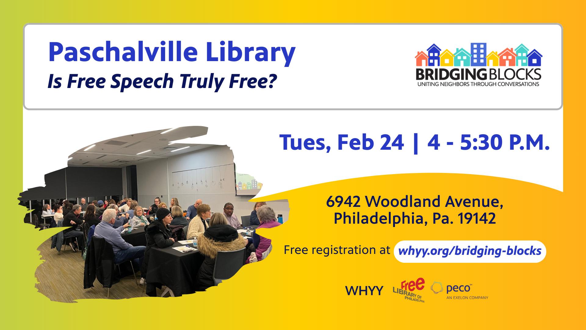 Join WHYY News Community & Engagement team for Bridging Blocks, a civic dialogue series in partnership with The Free Library of Philadelphia.