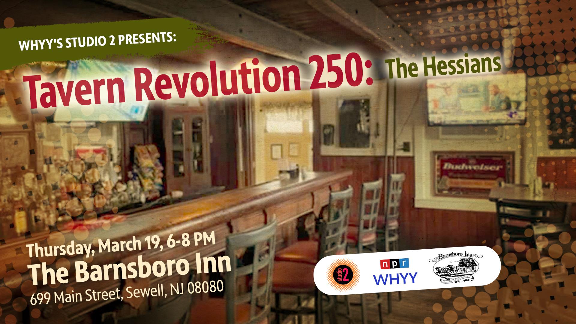 As part of WHYY’s ongoing series commemorating the 250th anniversary of the Declaration of Independence, Studio 2 invites you to a special Tavern Revolution event—an evening of history, conversation, and community. Hosted by Cheri Gregg and Kevin McCorry, this engaging program will take place at the historic Barnsboro Inn (699 Main St, Sewell, NJ) on March 19, 2026.