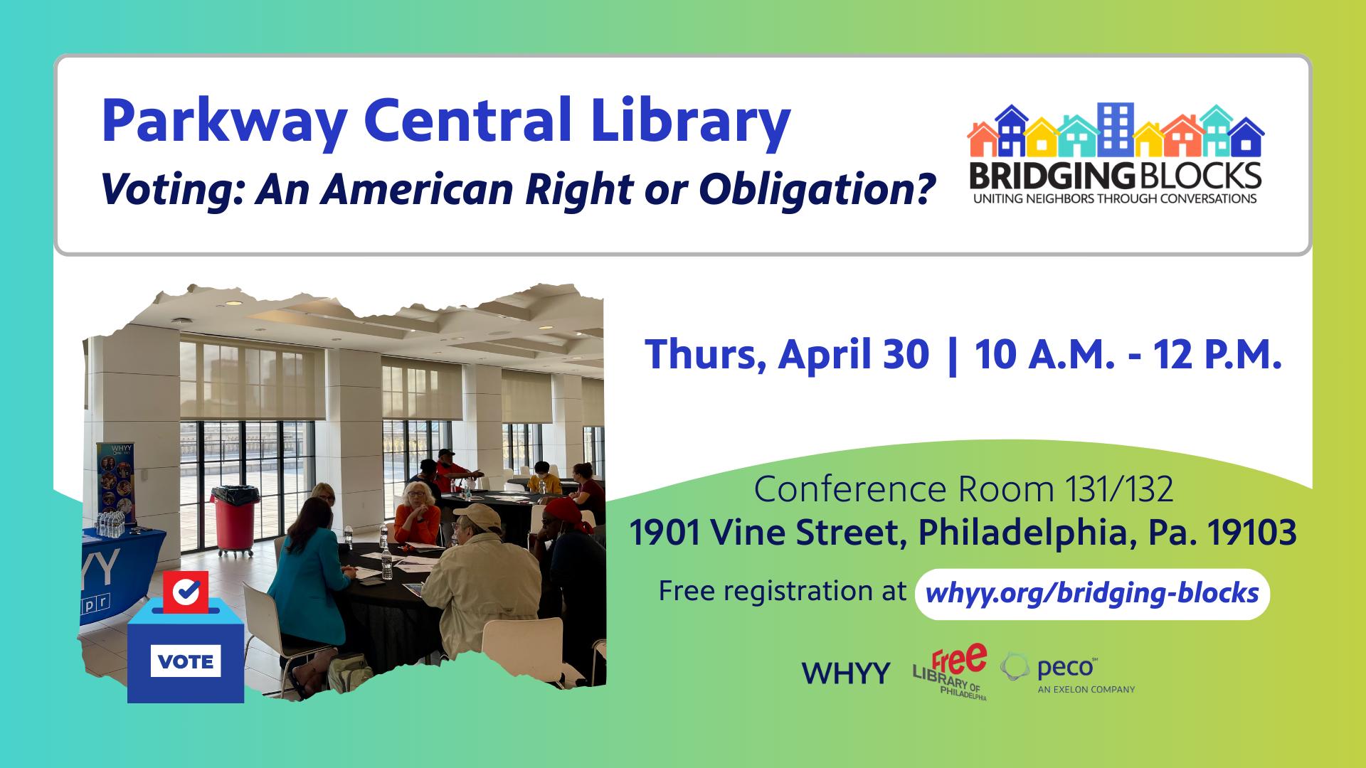 Join WHYY News Community & Engagement team for Bridging Blocks, a civic dialogue series in partnership with The Free Library of Philadelphia.